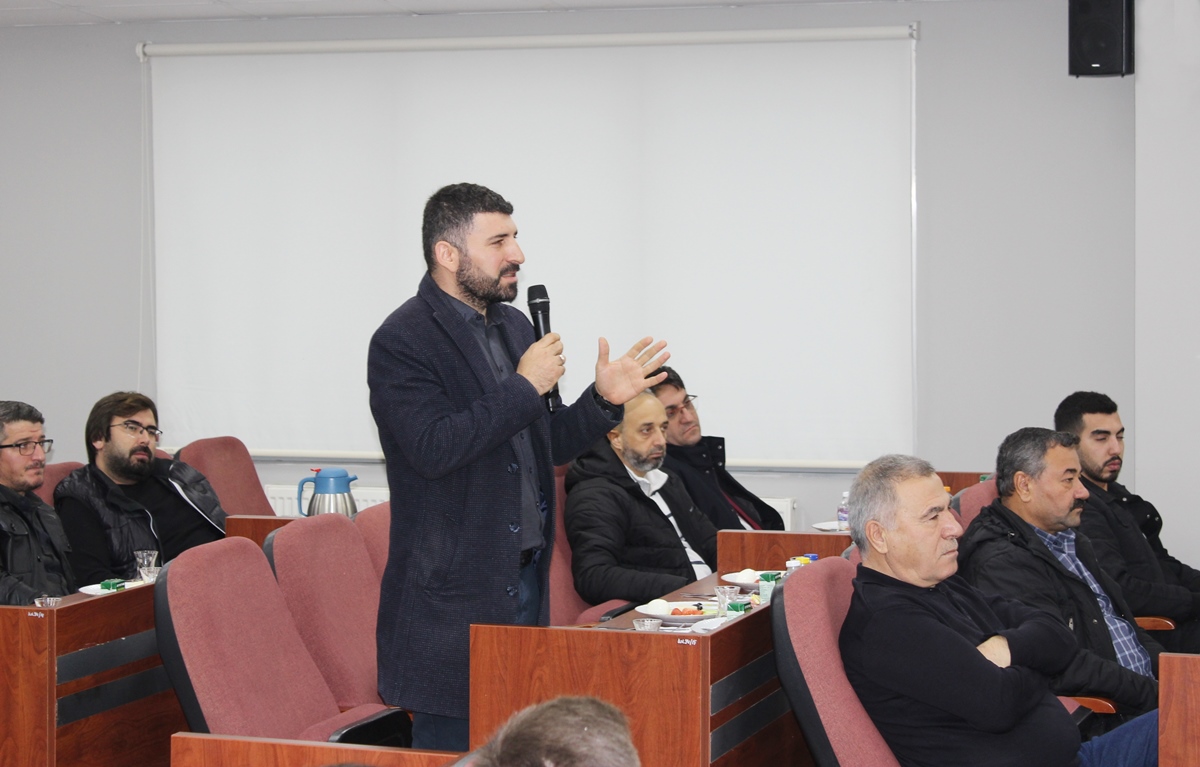 Toplantıda söz alan Oda Yönetim Kurulu Başkan Yardımcımız Enes Gören, ilgili meslek gruplarından gelen sorunlardan bahsetti, ardından özellikle yapı denetim havuz sisteminde yaşanan sorunları ve çözüm önerilerini aktardı.